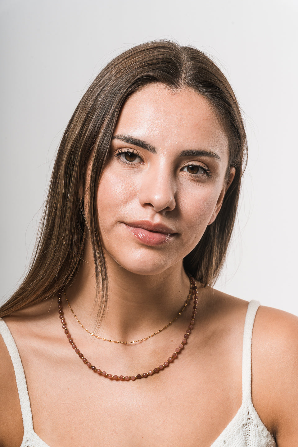 1 fio de pedras com separação de pequenas miçangas douradas de ródio